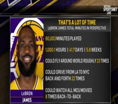 詹姆斯生涯至今已经出场超过60003分钟,根据美媒的换算统计,可以完成的事情: