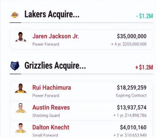 从里奇·保罗的逻辑看,现阶段东契奇已经开始接班詹姆斯,而这笔交易则是提前为未来詹姆斯退役之后的四五号位空缺寻找补充;至于里夫斯,在本赛季打出表现之后,湖人本就很难留下他,而灰熊至少能够为他提供稳定球权以及长期合约保障。