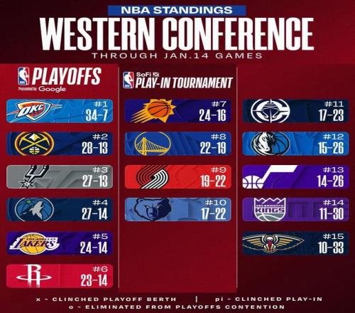 凭借着这波11胜2负,目前快船的战绩已经回到了17胜23负,排在西部第11——距离附加赛尾巴的灰熊(17胜22负)只差0.5个胜场,但是距离西部第六的火箭(23胜14负)还差7.5个胜场,因此每一场胜利都至关重要。