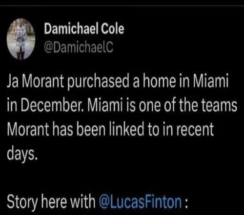 根据《孟菲斯商业呼声报》披露,在灰熊考虑交易莫兰特的消息被确认前两个多星期,莫兰特已经在迈阿密戴德县购置了一套房产,价值320万美元。
