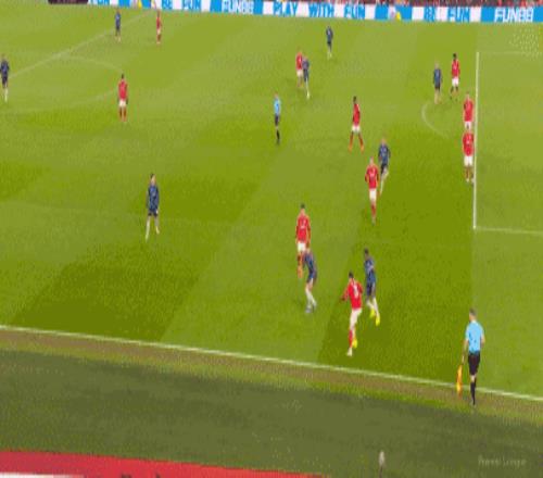 第37分钟,奥多伊右路拿球高速突破,廷贝尔战术犯规吃到黄牌。诺丁汉森林众将索要点球,不过VAR示意犯规在禁区之外,阿森纳逃过一劫。