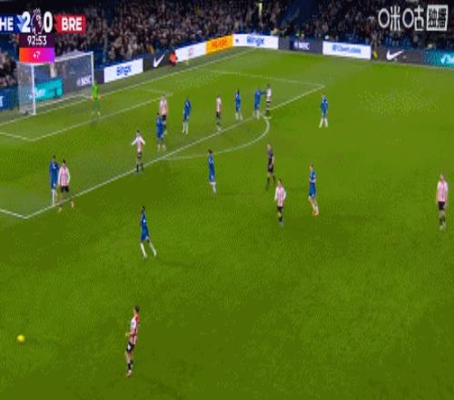第90+3分钟,布伦特福德左路起球传门前,福法纳倒地解围