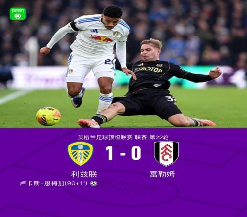 北京时间1月17日,英超联赛第22轮,利兹联坐镇主场迎战富勒姆。阿伦森错失良机,替补登场的卢卡斯-恩梅加绝杀。利兹联1-0战胜富勒姆。
