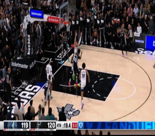 文班亚马半场仅出战14分38秒,10投6中,三分5中3,罚球9中8,砍下23分4篮板2助攻,正负值+20