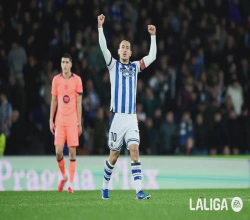 皇家社会在主场展现了顽强的抵抗力,比赛开始仅30秒,奥亚萨瓦尔的头球就攻破巴萨球门,可惜因越位在先被取消。