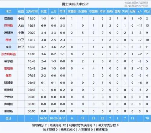 维金斯18分4板1助、鲍威尔13分2板、哈克斯10分1板4助、拉松7分3板3助、韦尔6分1板1助、米切尔5分3板2助、史密斯3分、丰泰基奥2分7板2断、阿德巴约2分4板3助、亚库乔尼斯1板1助