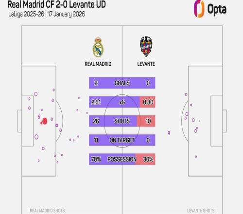 本场26次射门,为有统计以来皇马主帅西甲首秀比赛第三多