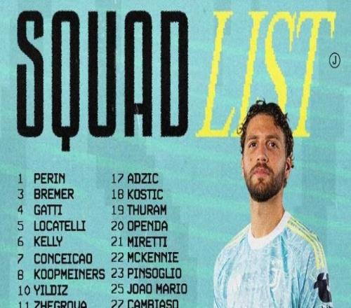 尤文客战卡利亚里大名单:洛卡特利领衔,米利克继续伤缺
